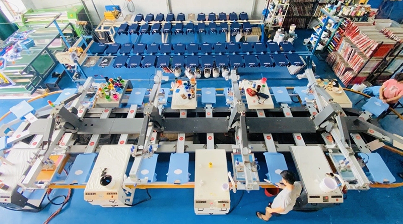 การพิมพ์ Silk Screen ด้วยเครื่องจักรอัตโนมัติที่ทันสมัย ช่วยให้กระบวนการผลิตมีความแม่นยำและรวดเร็ว เหมาะสำหรับการพิมพ์ลายบนวัสดุต่าง ๆ เช่น เสื้อผ้า, กระเป๋า, หรือผลิตภัณฑ์อื่น ๆ ด้วยคุณภาพสูงสุด และการควบคุมที่ดีเยี่ยม ลดข้อผิดพลาดและเพิ่มประสิทธิภาพการผลิต ด้วยเทคโนโลยีที่ล้ำสมัย ทำให้ผลลัพธ์มีความสวยงามและมีความทนทาน