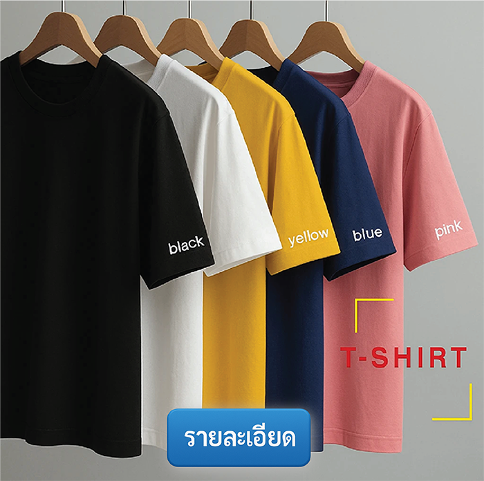 อาทิ เสื้อยืด คอกลม เสื้อคอวี เสื้อกีฬา เสื้อคนงาน เสื้อยูนิฟอร์ม